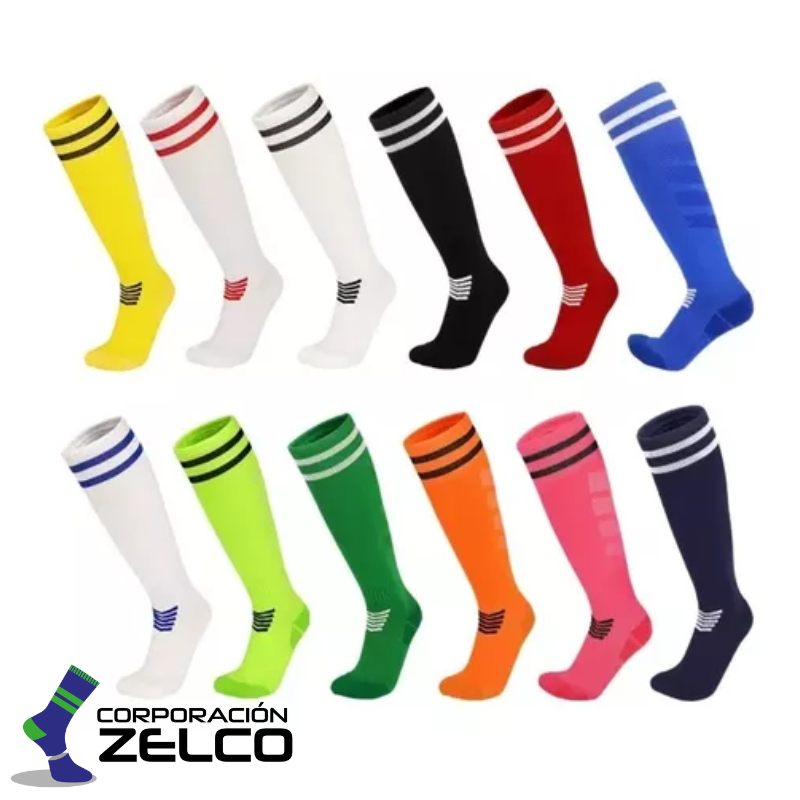 Las medias largas de fútbol de Corporación Zelco son ideales tanto para jugadores profesionales como aficionados, ya que combinan resistencia, durabilidad y estilo dentro y fuera de la cancha.